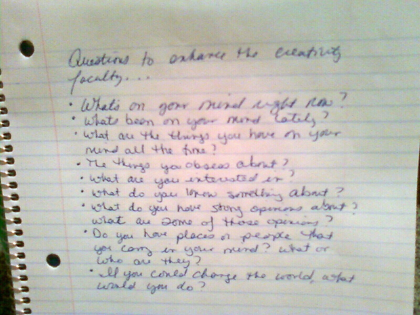 hadn’t realized I wasn’t doing freewriting nearly enough (it should be done everyday), or even asking the